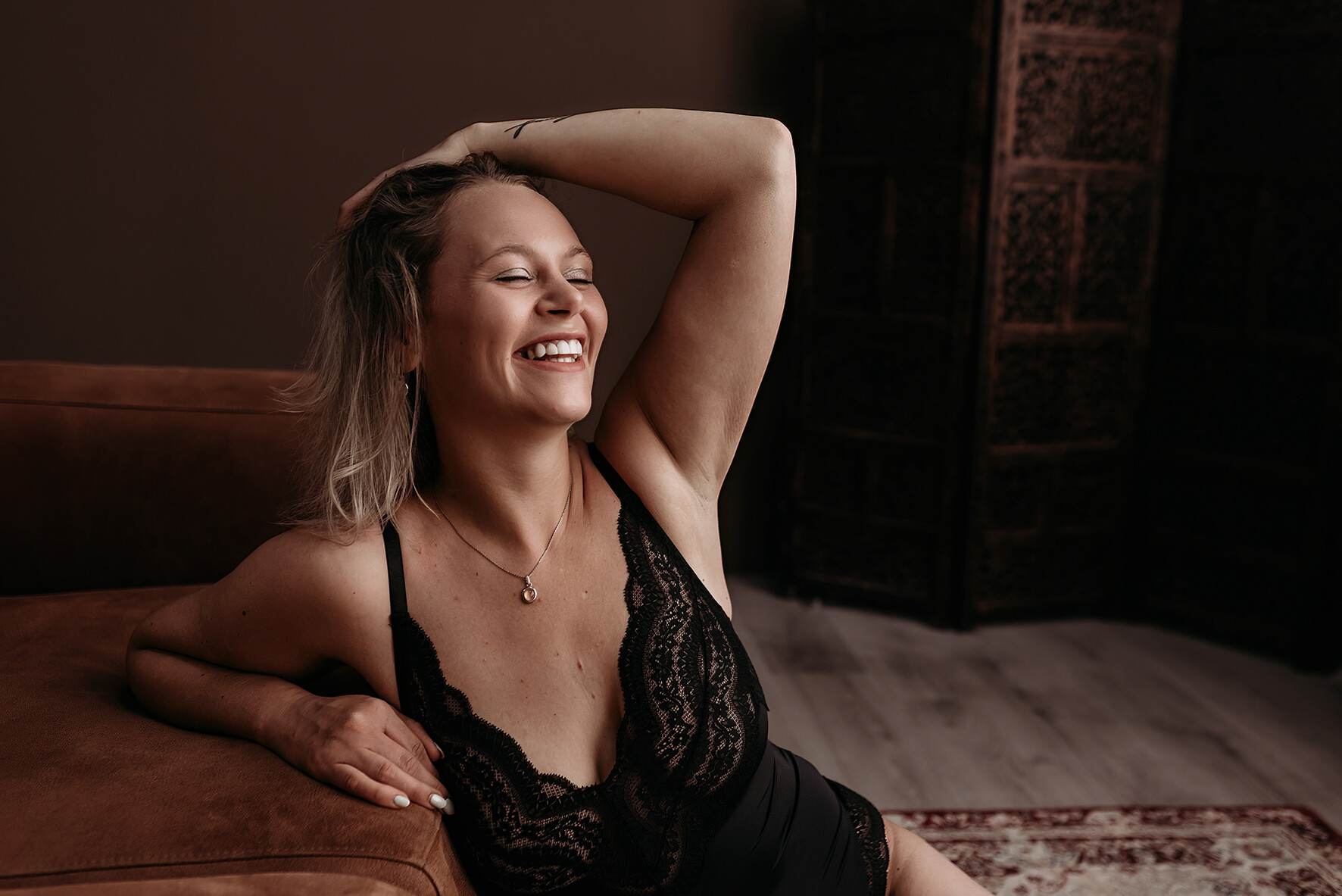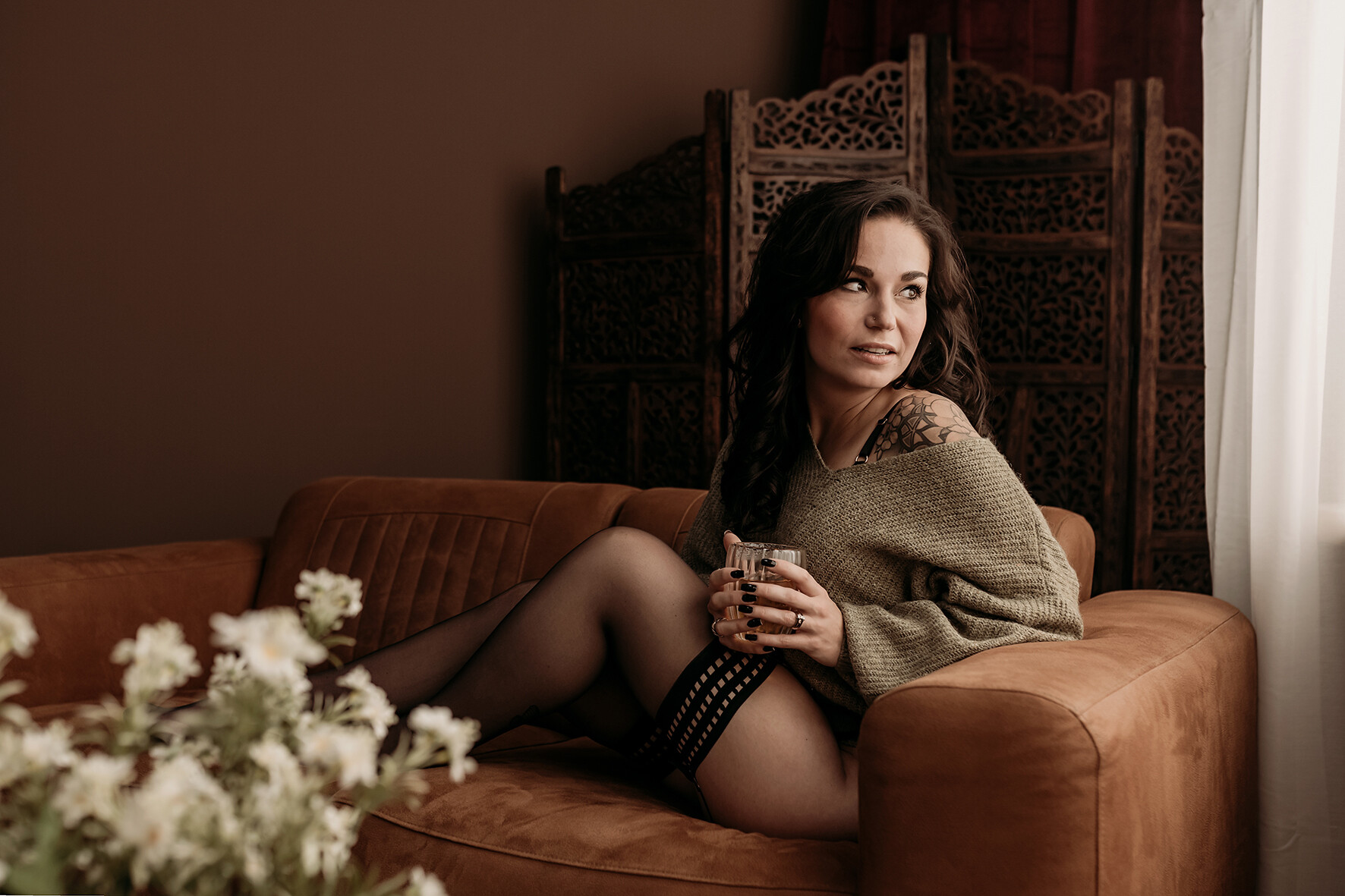 Here are some examples of boudoir photoshoots in our studio in Dongen to inspire you. In our beautiful studio, we can create a variety of settings. There’s a lot of flexibility! From more "lifestyle" shots with a bed setting, windows, or a sofa, to elegant plain backgrounds or silhouettes with artistic lighting. During our consultation, we will discuss what you find appealing, and I will take care of the rest.